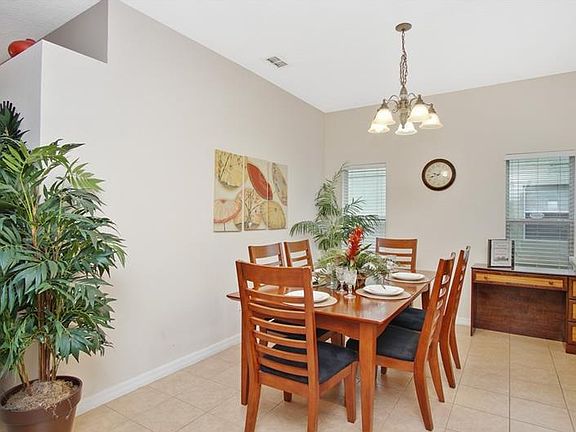 As soon as you walk in this beautiful Colonial Style 4 bedroom / 3 bathroom home, you will be stunned. The level of perfection this house was equipped with, is amazing. The open floorplan is really inviting! A walk through the front door gets you in the very spacious living room and dining room. From the living room, you go to the fully equipped kitchen with a NEW stainless steel fridge, wood cabinets and corian countertops. There are 2 master bedrooms with ensuite bathrooms and 2 bedrooms which share the 3rd bathroom. The garage has been converted into a game room with great games and decorations! The big sliding glass doors lead you to the covered lanai and pool area, which backs up to a private conservation area. All pool furniture is relatively new! The home is an active vacation rental. Bookings can convey. Great investment opportunity with high return! Can be used as rental property, second home or permanent residence. NEWLY PAINTED in 2015. NEW A/C inside and outside unit in 2016 with 10 year warranty. NEW POOL HEATER in 2016. HOA includes complete lawn care, use of pool, fitness and clubhouse and basic cable. Call your realtor and come see this stunner today!