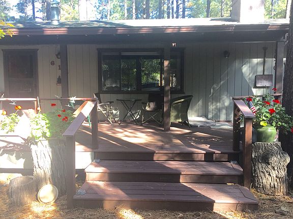 Great Cabin in the cool pines. covered front Maint. Free deck, Great room has fireplace. Home has been updated with laminated floors, quartz counters, natural gas forced air furance, 3 bedrooms 2 baths plus a bonus room leading to the side deck. One car garage, Nice lot with mature trees. Walk to National forest. Close to Hiking, Golf, Skiing.
