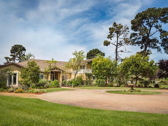 This private road remains one of Carmel Valley's best kept secrets. There is an indescribable feeling you get when you arrive at this property - a serene, relaxing, peaceful escape. Drive down the country lane to your own private, oak-studded 5.28 acres surrounded by pastures and open fields, large flat fenced yard, glorious gardens and a circular estate entry. Soaring ceilings, wonderful light and a grand entry welcome you in to this home resplendent with casual elegance. The French doors throughout beckon indoor/outdoor living and the expansive mountain and valley views deliver. Four bedrooms, three and one half bathrooms, including a huge ground floor master suite and an office, or guest suite with front and back balconies and breathtaking views. A spacious kitchen/family room, three fireplaces, big utility room, pantry and formal dining room complete the home. Large 3-car garage and a private well. All of this in an incredibly convenient Mid-Valley location.