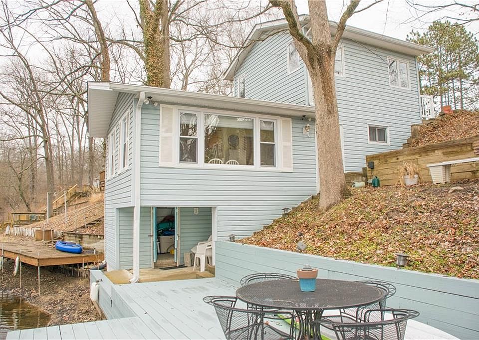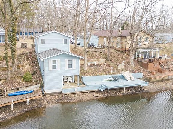 Get your lake home bought now! So affordable with a deep cove location, big yard for future expansion, lots of parking and great views across the lake. Small but mighty space gets it done, main level is the bedroom with eat in kitchen and living room in walkout basement. Concrete steps from take you to the lake with large dock for fishing, swimming and boating. You will enjoy your morning coffee mesmerized by the beauty of East Lake. Enjoy evenings around the fire pit or take a sunset ride on the lake. This friendly community features a Club House with many fun filled events, fast boating from 12 to 5 and yearly dues to ELLOA are only $465. Set your hook on this home today! NOTE: lake is at winter levels, will return to normal pool soon.
