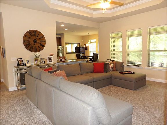 Better then New ! This home is the Scarlett floor plan with 4 bedrooms, 2 full baths and 1 half bath. There is a large Kitchen with lots of cabinets, stainless steel appliances and Island and Breakfast bar overlooking the spacious family room. This home features a formal Dining room, Separate Office/Study. Minimum of 9 foot ceilings everywhere and 3 separate trey ceilings including double treys in the family room and Master bedroom. The home offers wood floors in the Foyer and Dining room, Ceramic tile in all the wet areas, Frieze carpet in family room and all bedrooms, In the master bedroom suite there is a double sink, Tile shower, Separate garden tub and large closet. The back yard is completely fenced in and there is a 2 car courtyard garage. Home also comes with blinds. This home will not last, Come compare with the new ones being built in the community and you will buy this one because of the updates. The Fridge, washer, and dryer are Neg but not automatically included in the price.