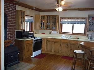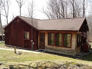 This year around home has 13 wooded acres. The home features 3 bedrooms, 1 bath, knotty pine interior, an all season porch overlooking the back yard, large eat in kitchen with a wood stove, living room with little nook for a dining room or computer area. The 3 stall garage has lots of room for your yard equipment with a roomy loft upstairs. There is a garden area just off of the garage. There is also a large lean to out back for storage of your wood or extra equipment. This place is just around the corner from the famous Pine River for canoeing, kayaking, and fishing and just minutes from Caberfae Ski and Golf makes this an ideal year around home or cottage!
