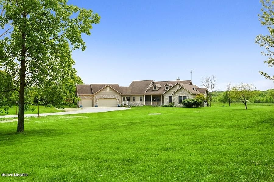 Meticulously maintained custom built ranch home situated on 5 1/2 acres. This country home offers large living room with fireplace, formal dining room, gracious master bedroom suite with walk-in closet and whirlpool tub, main floor laundry room, kitchen featuring walk-in pantry, breakfast room with adjacent four season room. Enjoy entertaining on the new large deck overlooking rolling lawn and majestic fields. Features include all new window treatments, generator, new carpeting, hardwood floors, new driveway, three car attached garage and additional detached two car garage with new electricity. Unfinished basement offers unlimited possibilities. Public water & sewer. Minutes to Cherry Beach, New Buffalo Marina and Chikaming Country Club.