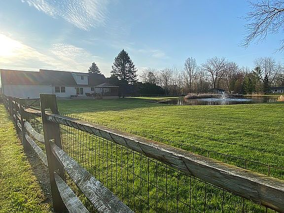 Remodeled home with tranquil setting on over 3 acres of property with fountained pond that is great for swimming and has been stocked with mature fish. Pole barn is 30x45 (1,300 sq) with concrete floor, wood burning stove and storage loft. Garage has lots of room for work bench and storage (576 sq). Attached deck has spacious permanent pavilion with real roof shingles. Large turnaround driveway stores your RV and is great for entertaining or kid play. First floor master with bathroom and walk in closet. Remodel includes entire kitchen with wood floor, new cabinets, quartz countertops and stainless steal appliances. Two bathrooms remodeled as well as entire second floor in 2019. New carpet throughout and most rooms freshly painted. Basement finished in 2018. Great place to enjoy the outdoors, entertain, and raise a family!