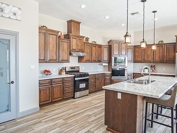 Beautiful custom-built home on 1.140 acres of land with over 3500 sq ft of livable space! 4 bedrooms 4 bathrooms plus and office/den. 10 ft ceilings throughout, exquisite natural wood doors, wood like tile, open layout with split floor plan, recessed lighting. Primary bedroom has make-up sitting area, double sinks, walk in shower, walk-in closet, custom-built alder cabinetry with lots of storage, 2 Jr Suites with their own bathrooms, extra insulation on interior walls, 2 storage sheds, fenced & gated!