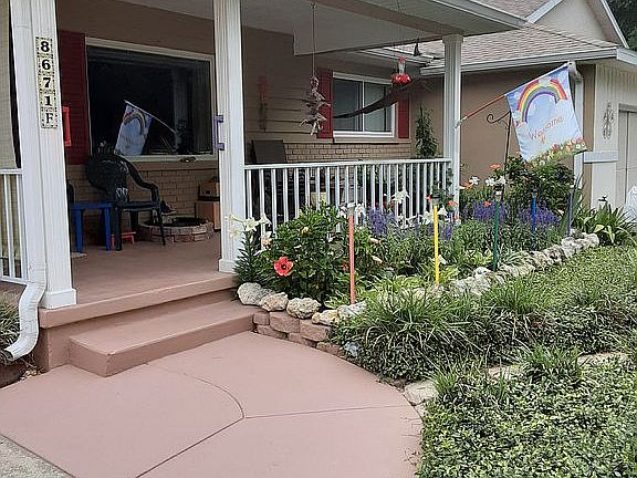 Easy Florida living in a villa with 2 covered porches, a Florida room under heat and air, owner's bedroom with walk in closet and bath with shower, second bedroom with hall bath, lots of storage, 1 car garage with laundry and easy access to the kitchen. Nothing needs to be done to make this your home: new laminate floors in living areas, hallway, and bedrooms. New vinyl in bathrooms. New porcelain tile in kitchen and lanai/dining area. Three new solar tubes. New energy efficient double pane windows throughout. Extra blown-in insulation in attic. New full landscaping with jasmine and ferns. Refinished counter tops with one of a kind backsplash in kitchen, new sinks and faucets, and high rise toilets. Newer appliances, attic, new storm door with self-storing screen, newer garage door opener, new gutters, and many other recent upgrades. New roof 2018. New HV/AC October 2018 with whole house filter and UV light scrubber. Can be sold furnished! Neighborhood Description Friendly neighbors in a 55+ gated active community. On Top of the World offers a wide variety of amenities that include swimming(indoor/outdoor), tennis, golf(fee), fitness center, shuffleboard, transportation to shopping, planned bus trips, library, and many groups and clubs. All activities are accessible by car, golf cart, walking or bicycle. Retirement life at its best.