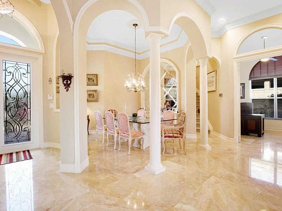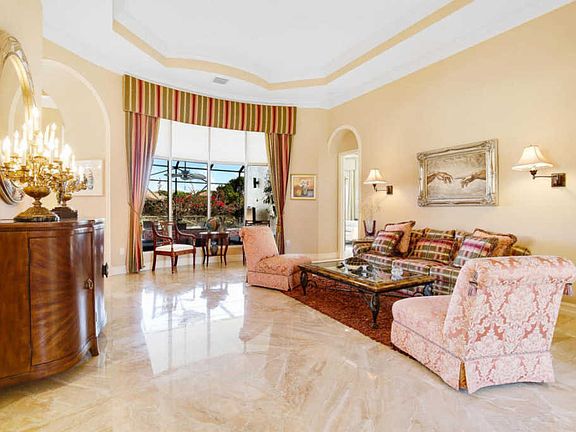 Live the Palm Beach lifestyle! Are looking for an active clubhouse lifestyle w/ many activities as well as an impeccable luxury home? Look no further! This stunning Montego model is the talk of the neighborhood & won't last long! This one of a kind home is located on an oversized lot in a cul-de-sac w/ a large driveway & is appointed w/ the finest upgrades & designer touches. From the moment you walk through the double glass entry doors you will be impressed by the Italian marble throughout as well as the view of the oversized screened patio, heated salt water pool w/ spa & built-in table. Truly an entertainers dream! This beautifully maintained home offers 2 new AC units, crown molding & trim work, etched French patio doors & new light fixtures. The large gourmet kitchen boasts an