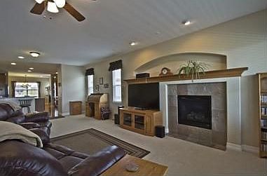 Gorgeous turnkey home w/upgrds galore, backing to open space! Relax on private covered deck w/amazing views. Entertainers dream w/open flrpln featuring lrg great room w/fp and high ceilings. This adjoins gourmet ktchn w/gas stove, dbl ovens, ss applcs, cherry cabinets, granite and custom tile bksplsh w/under cbnt lights and huge pntry. Semi formal dinning room w/addl fp right off kitchen. Brand new upgd carpet. Fully fnshd w/o bsmnt adds 1 br, 3/4 bath, fitness area, covered patio. This home is a gem!