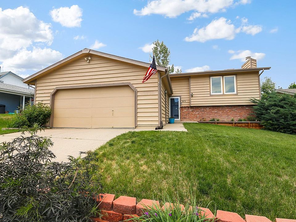 Lovely multi-level home with fresh paint and new laminate flooring. Relax in the bright and cheery living room with a built-in fireplace and surrounding shelves, vaulted ceiling and skylights. The kitchen has freshly painted cabinets and brand new stainless steel appliances. There are two bedrooms and a bathroom on the main level and two bedrooms and shared bath with laundry on the lower level. The downstairs has large windows with plenty of natural light and feels open and bright. The large deck out back is the perfect place for grilling and entertaining. Enjoy the peaceful neighborhood on a quiet street that has no HOA! Great location close to E-470 and other major roads, walking trails and shopping centers.