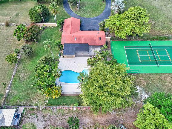 Amazing 4 bedroom, 2.5 bath CBS pool home with 2 car garage plus huge circular drive! Backyard fully fenced for kids or pets to play safely! Bring your toys, gated PBG neighborhood is pet friendly with no restrictions for boats, RV's, trucks, etc. This home has been beautifully updated with white kitchen cabinets, granite, polished marble floors in living areas! Over 300 feet on wide freshwater canal. Detached 16x12 air conditioned ''She-shed'' on the water could be home office! Amazing personal tennis court just professionally resurfaced and taped for tennis or pickleball. Free form pool has enormous concrete deck and raised platform for entertaining viewing the water. Lush, mature tropical landscaping includes sweet mango trees. New central A/C 2020!