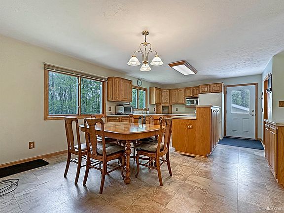 Welcome to your dream home! This charming raised ranch offers 4 spacious bedrooms and 1.5 baths, perfect for families of any size. Enjoy a completely remodeled kitchen, brand new furnace and central air conditioning, and a bright, open-concept layout that creates a modern and inviting atmosphere. Nestled on over 7 wooded acres, this property provides privacy, peace, and a connection to nature. A bonus summer cottage with a large garden is ideal for green thumbs or hosting guests. Additional upgrades include a new roof, vinyl siding, and a whole-house emergency generator for year-round peace of mind. Unwind in the basement sauna after a long day or make use of the spacious 2-car garage for all your storage needs. This unique property truly has it all—comfort, functionality, and natural beauty. Don’t miss your chance to own this Upper Peninsula gem! Bedroom end of the house does not have directly ducted heat into the two upstares bedroomsand one downstairs bedroom.