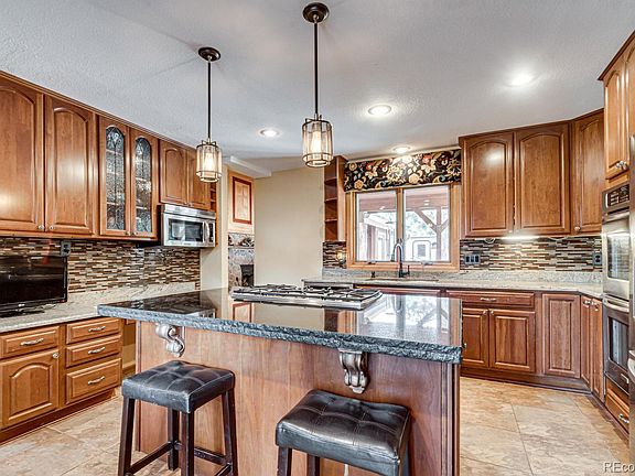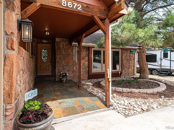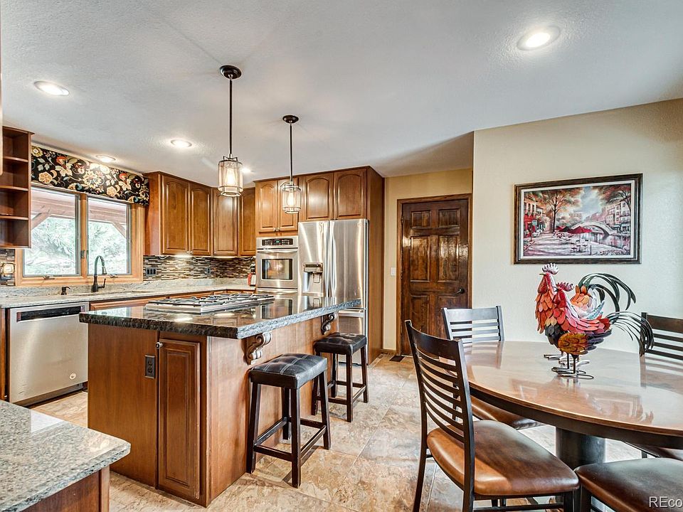 BACK ON MARKET. BUYERS' LOSS IS YOUR GAIN!!! This gorgeous, updated home has the distinct features of a beautiful mountain retreat! The gracious entryway welcomes you into the two-story great room featuring a wood-burning stone fireplace with intricate wood in-lays above, making this a stunning focal point! The updated kitchen features deep cherry cabinets and granite counters with stainless steel appliances and a gas stove. Double doors lead out onto a private deck just off the kitchen - convenient for grilling! The fully finished walk-out basement boasts a theater, a beautiful stone dry bar and second wood-burning fireplace! There is a fourth bedroom in the basement with a built-in book case and a beautifully appointed bath just around the corner. The Master Suite has its own private deck to enjoy Colorado's amazing mountain views! There are two closets in the master bedroom - each featuring their own masterfully crafted barn door! The updated 5 piece master bath boasts an amazing soaking tub, separate step-in shower, and a gorgeous double vanity. There are two additional bedrooms upstairs that share a spacious, full-sized bath with double sinks and convenient storage. You'll enjoy amazing outdoor living in the back yard with multiple decks, a dog run and a relaxing water feature. Welcome Home! The roof, A/C and furnace were replaced in 2017. Home has new garage door opener with remotes. Washer, Dryer, Projector and Screen in basement are included. *North Pinery Parkway is an evacuation snow route, so you can always get out in the snow!*