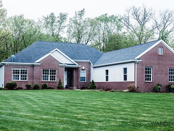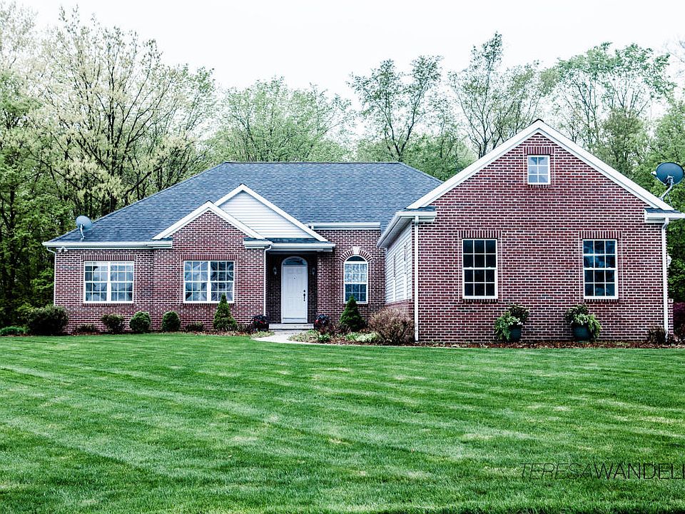 This is it! This beautiful brick ranch sits on a huge, private lot (.56 acres). The back yard makes you feel like you're in a private wooded setting, and if you look hard enough, you just may find a creek that runs through it! A spacious open floor plan with beautiful cathedral ceilings, hard wood floors throughout the main floor and granite counters in the kitchen will make this the destination house for all your kids' friends and yours as well! The master suite boasts of beautiful views of thewoods, a great spot for a sitting area or reading nook, a huge bath tub to soak in and walk in closet. The basement us unbelievable!! The space really is a gift that just keeps on giving! Down stairs you'll find a walk out with beautiful day light windows, a HUGE bedroom, full bath and a unique