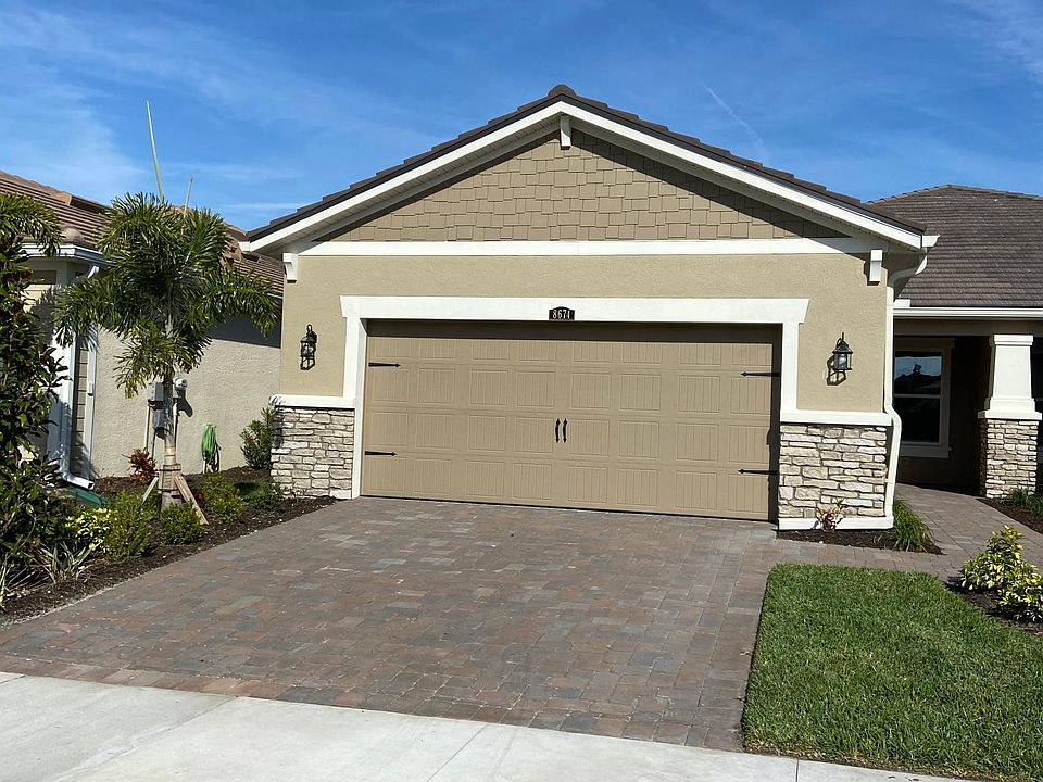 FURNISHED ATTACHED NEW VILLA WITH 2 CAR GARAGE. No Smoking. 2 bedrooms + den / 2 bathrooms with 2 car attached garage in prestigious new gated community of Sunrise Preserve. Outdoor screened lanai with furniture. Open kitchen with separate eat-in area. Video doorbell. Truck (like Tacoma or Tundra) will fit in the garage. Resort-style amenities, including a lap pool, clubhouse with well equipped fitness center (incl. Smith machine ) and sports courts. Convenient access to beaches, downtown and I-75. A-rated schools. Due at signing: 3200 (1 mo + $ 200 security deposit for community center), 1st, 2nd and last months. Renter responsible for utilities and internet. Pest control, lawn maintenance and garbage are included in the rent.