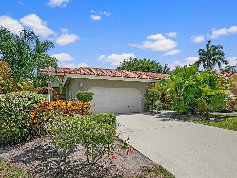 This beautiful villa is situated in a desirable gated community with a 2 car garage. Private screened in patio, large open rooms with lots of sunlight. Charming backyard on quite street. Walking distance to many amenities, including a lovely lake, children's playground, clubhouse, community pool, & tennis courts.