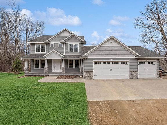 As you pull up to the charming farmhouse front porch you will know you are home. The flex room off the entry is great for a home office or playroom. Open and spacious concept floor plan allows for sun filled spaces with impressive finishes. Stone fireplace in the living room makes the entire space cozy. Large dining area with patio doors to deck. Beautiful kitchen with granite counters, stainless appliances and lots of cabinet space. Main floor laundry/mud room off the 3 car insulated and heated garage. 4 bedrooms plus loft area in the upper level. Relaxing primary suite with large walk-in closet, soaking tub and separate shower. Finished walkout lower level with wet bar, 5th bedroom and full bath. The lot is exquisite with loads of wildlife and private views. You will love the adorable playhouse and perfect sliding hill. Located across from Lake Rebecca Park Reserve for endless recreational opportunities. Delano Schools. This one has it all!!!