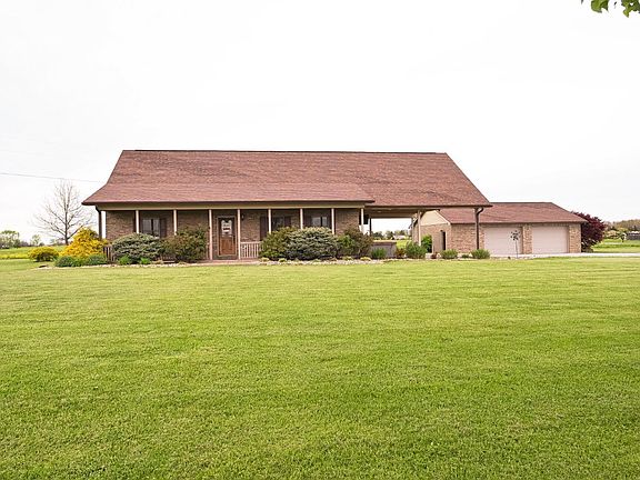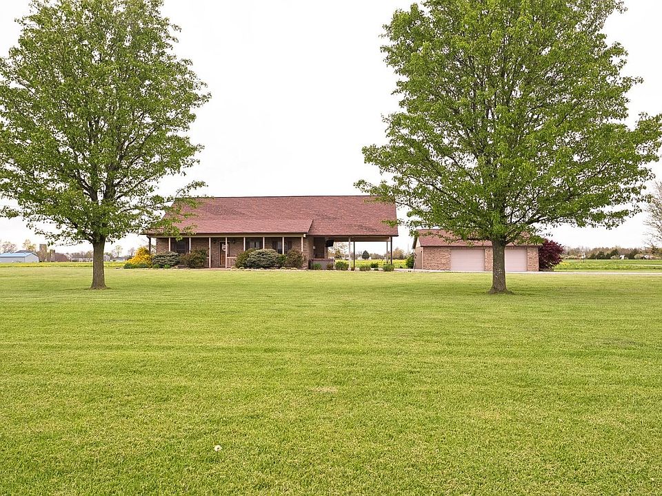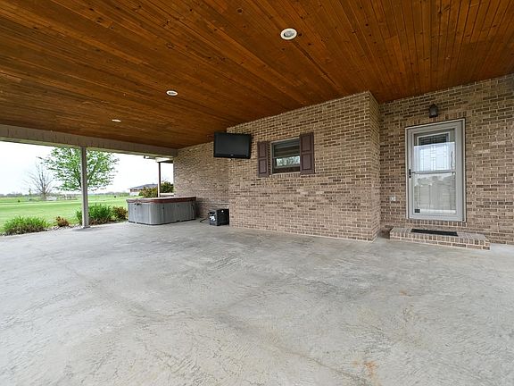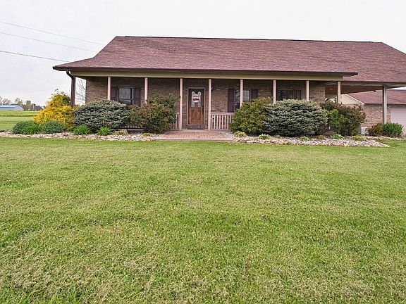 Beautiful inside and out. Three Bedroom 2 Bath Brick Ranch sitting on over TWO acres of land. Plenty of storage in your extra large garage that has a wood stove built in storage shelves. Entertain outside under the huge covered patio that has a hot tub underneath. Also enjoy the firepit and swing. Inside you will find crown molding throughout along with nice 6 panel wood doors, hardwood floors beautiful window treatments. All appliances included. Save money on utilities and enjoy a tax break with the Geothermal system in place.