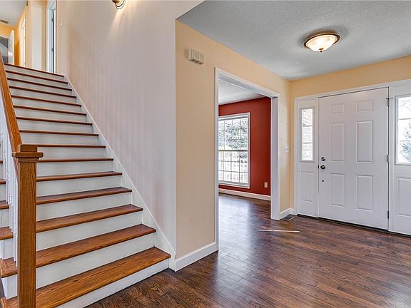 What a beautiful country setting on 4.79 acres but with conveniences of being in a subdivision including Fiber Internet/TV! This story and a half features a 2 story Great Room with 2 story Hearth surrounded by 2 stories of windows built on a bluff on top of the Little Salt Creek valley below. Great views also from the Screened in Porch, and two stories of decking! The home also features a walk out Basement with a Gas Fireplace and a Wet Bar! The Kitchen features a double sliding door that opens up to the Screened in porch along with an eat on Island! Also featured on the main level is a spacious Laundry Room and the Master Suite which features a vaulted ceiling and direct deck access! The Bath features a jetted tub and dual bowl vanity. Upstairs features an huge open Loft that had been used as an Office open to GR below. Also this level features two other Bedrooms and a full Bath. The wood floors have recently been refinished. New carpet, new Microwave, new Paint throughout!
