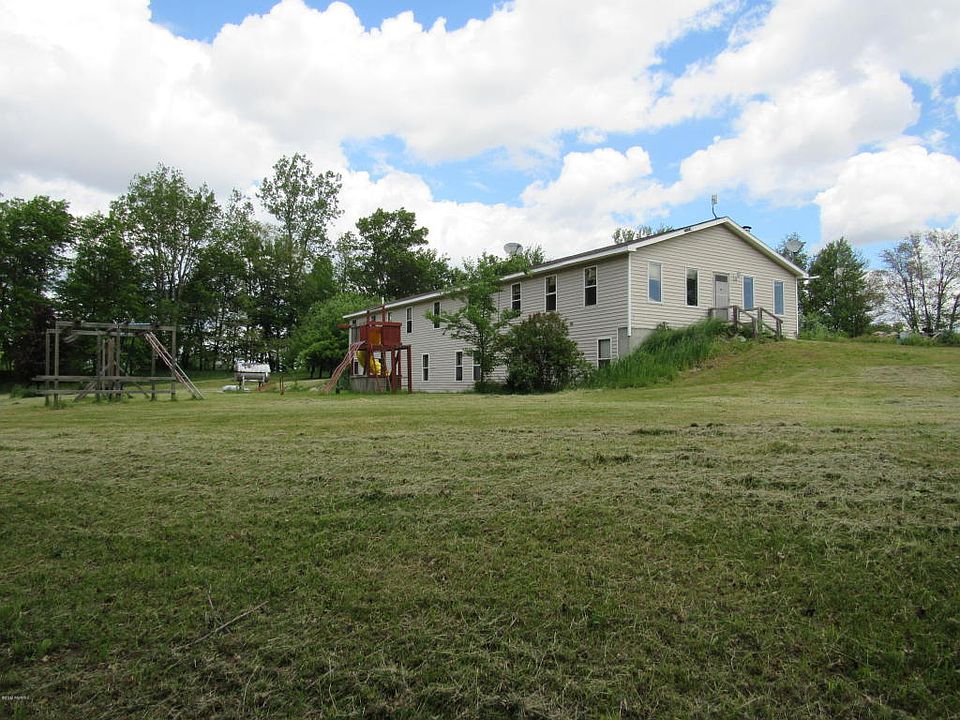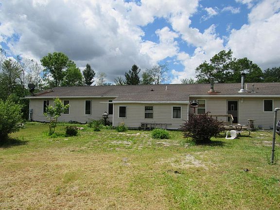 Stick built!! Apple Orchard! Heated with wood and propane. This home is 5.3 miles out of Greenville. It has 9.11 acres that is wooded with wetlands and a large pond out front. This ranch style home has 2816 sq feet of living space on the main floor. Featuring a 32x40 great room that surrounds the kitchen area with an island and bar stools. There is an office and 5 bathrooms on the main floor, There are two toilets in each large walk in style bathroom with a tub/shower. There is a spacious pantry with shelves for storage,the kitchen has light oak cabinets with many cupboards, and living room is open and adjoins the dining area. The full basement offers more space of over 2000 more feet of living space. There are 4 Bedrooms downstairs and two bathrooms. Wood burning stove heats the whole home. Lots of possibilities!