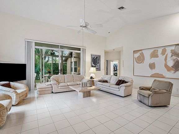 Bring your buyers to this ALL AGE community and they will love this roomy, light, bright and airy end unit. Features include: open floor plan, vaulted ceilings, remodeled kitchen with glass counters and backsplash. There are sliding glass doors from the living room to the quiet and peaceful porch setting. The pool and clubhouse are within walking distance. Excellent shopping and Boca Raton schools are close by. Easy to show.