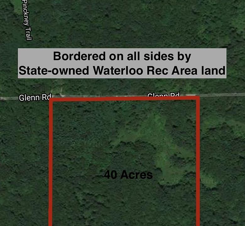 This is a truly unique property and opportunity! 40 acres of wooded land surrounded on all sides by State-owned land in the 21,000 acre Waterloo State Recreation Area. The rec area has 47 miles of trails, 11 fishing lakes, cabins, a yurt, and direct connections with The Pinckney Rec area and other surrounding preserves. The property has direct access to the surrounding equestrian and hiking trails that lead to equestrian and backpacking campgrounds within the recreation area. The property is located on Glenn Rd., which is designated as a Natural Beauty Road. There is great value in the privacy, abundant and diverse timber stand, and the natural beauty and wildlife. The rolling, wooded terrain is ideal for a private estate, multiple building sites, hunting, equestrian facility, or long-term investment. Multiple lot splits are available. For mapping and reference purposes only, the former mailing address of property was 12109 Glenn Rd.