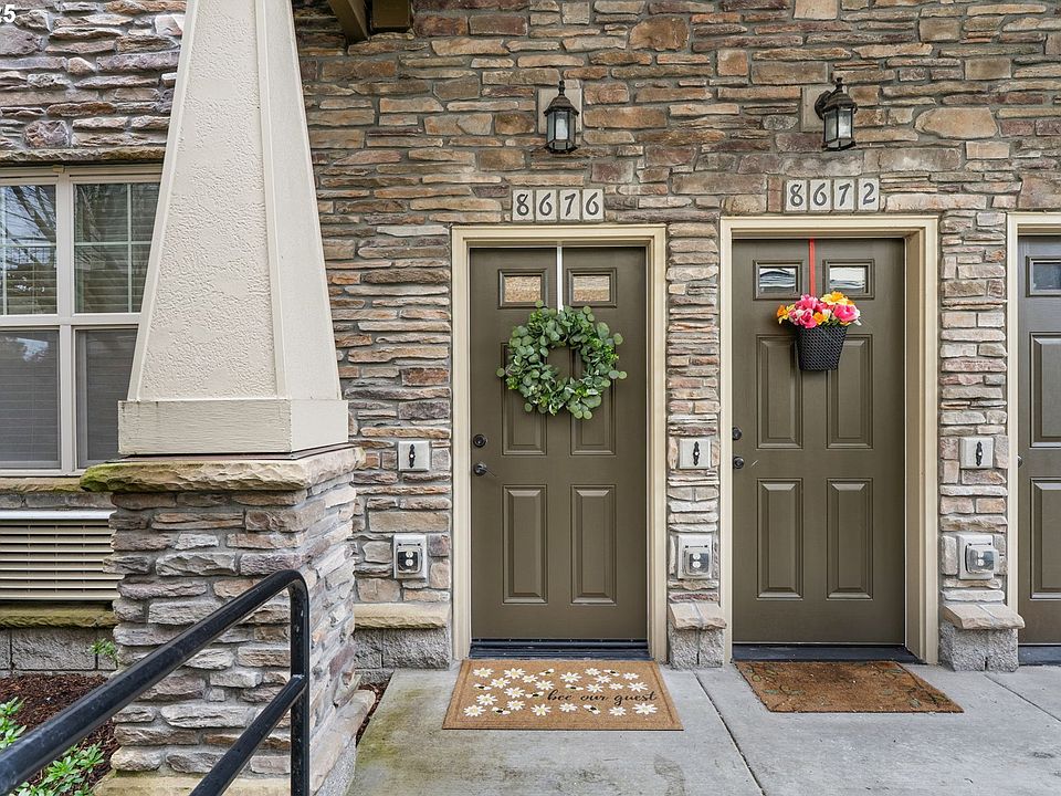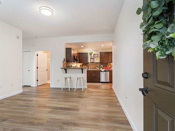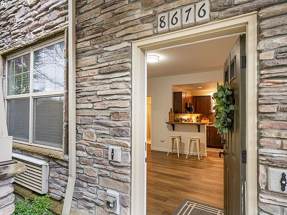 Convenient and sought-after one-level living in Arbor Crossing Condominiums! It features, two bedrooms, one with access to a covered outdoor patio, a full bath and brand new, luxury vinyl plank floors and fresh paint. Modern kitchen with generous counter tops, large format ceramic tile floors, stylish cabinetry, and stainless steel appliances. A breakfast bar makes for a perfect seat to enjoy meals or chat with the cook! Nine foot tall ceilings make this condo live large. This complex offers loads of amenities! There is a large playground area in a park-like setting, a clubhouse with a party room, entertaining facilities, a workout gym, and a beautiful pool. The location is unbeatable: it is literally steps to TriMet Park & Ride Quatama Station and easy access to Intel and Orenco businesses, shopping, dining, and entertainment. The HOA includes water, sewer, trash, internet, exterior maintenance, and more.