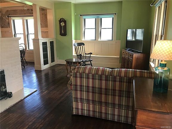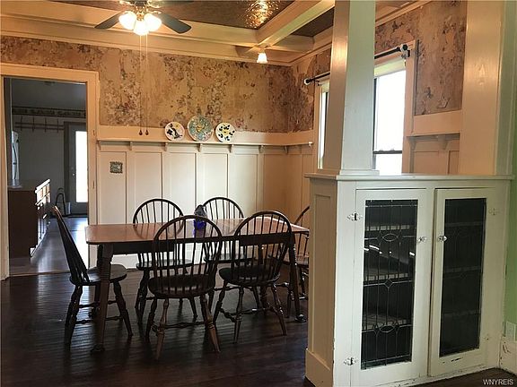 Lovely craftsman-style village bungalow. Welcoming covered front porch surrounded by blooming landscaping and perennials. Inside you'll find refinished hardwood flooring, new windows/doors and a high-efficiency furnace. The living room and dining room are adorned with classic trimwork, a leaded-glass bookcase, built-in cabinetry, window seat, a plate-rail and decorative tin and woodwork ceiling. All first-floor living with two bedrooms, a full bath and laundry off the kitchen. 9 ft ceilings. Backyard deck overlooking young ornamental trees and a new privacy fence. Detached 2.5 car garage plus storage. Yard has enough room to store a trailer or boat. Refrigerator, washer, dryer and two window a/c units included. Located close to village amenities.