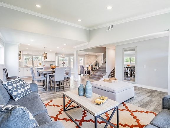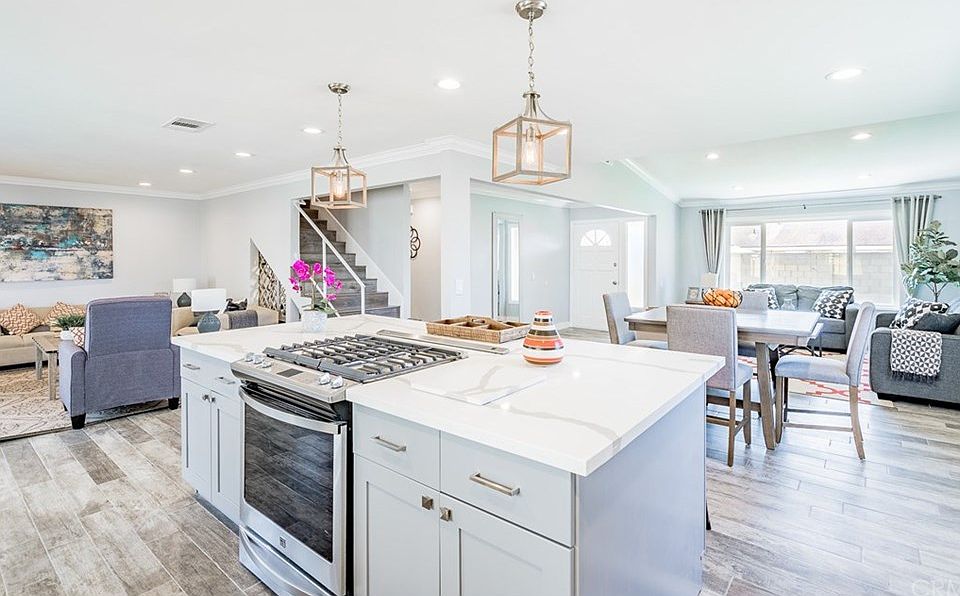 Incredible opportunity to own a 4 bedroom Westmont home fully remodeled. You will fall in love as soon as you walk in. This floorplan is absolutely amazing. Upgrades include: porcelain floor downstairs, full remodeled kitchen, all new appliances, quartz countertop, downdraft exhaust, high end slide in gas stove, mini fridge, new kitchen soft close cabinets, large kitchen island, glass kitchen backsplash, and custom wine cellar. All bathrooms are brand new: double sink, rain shower in master with bench, Bluetooth speaker in master for shower. Other upgrades: quartz custom fireplace, recess lighting throughout, small lighting control phone, smart nest control temperature, newer furnace, epoxy flooring in garage, glass stair rails, crown molding, vinyl flooring upstairs, and much more. Property has RV access, new patio in backyard, 2 exterior waterfalls, and private door to park. Walking distance to Tamura Elementary School, just minutes from Shopping, Dining, Beach, Freeways, and located in Top Fountain Valley Schools! Don't Miss this Chance!