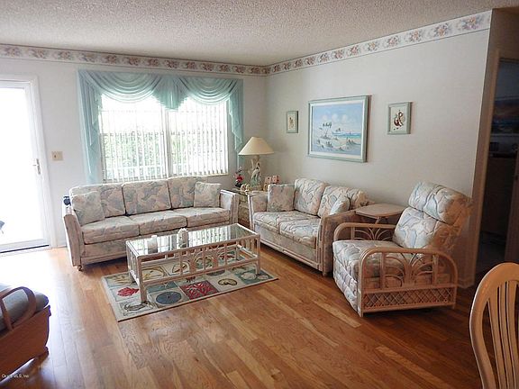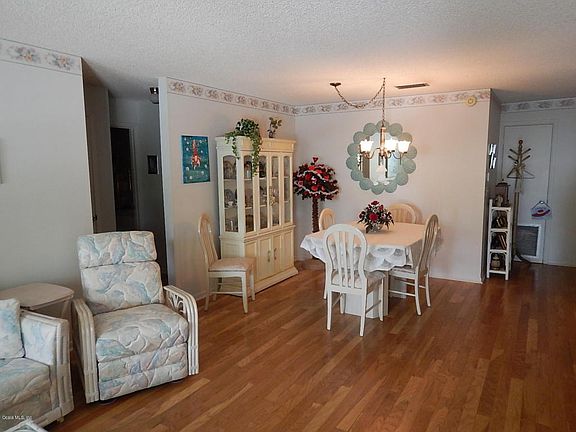 Very nice and well maintained Montgomery model. This home is located on a dead end street in Americana Village. This 2 bedroom, 2 bathroom, 2 car garage home has beautiful hardwood flooring in the living room, dining room and hallway. Tile flooring in kitchen area and carpet in both bedrooms and family room. the sunroom is under heat and air and new screening has been added. The kitchen features a new dishwasher. Washer and dryer are 5 years old. Roof is 4 years old. Located in Ocala's premier, gated, active 55+ community, loaded with amenities, including golf cart access to two shopping centers.