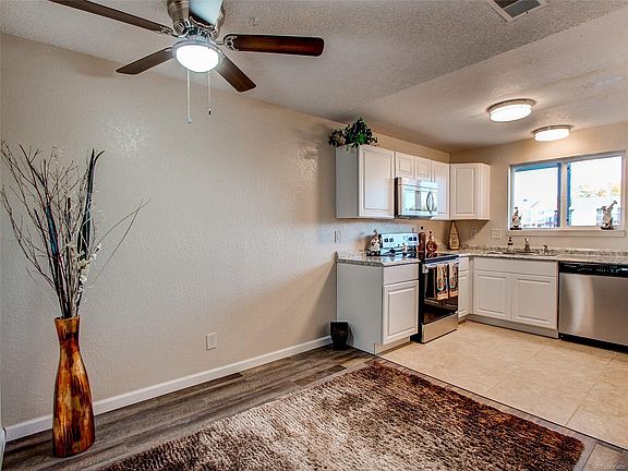 Fabulous condo completely updated. Large rooms with useable space - New furnace, HW heater, A/C, An all NEW kitchen with SS appliances, full size washer and dryer, New bath with tile and updated vanity, NEW windows, updated wood fireplace in living room with new tile surrounds and all new beautiful designer vinyl flooring throughout. Great location with open space and mountain view off your covered patio. Close to shopping, schools and great access to Boulder or Denver. The entire complex is being updated on the exterior. This building is in phase 3 of 5 with work continuing but improving the value.