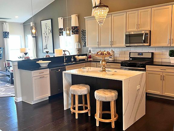 Welcome to The Lavender!Check out this stunning 2-bedroom, 2-bathroom home with a flex room--perfect for a home office Boasting an inviting Great Room with soaring vaulted ceilings, this home provides an open and airy atmosphere perfect for relaxing or entertaining. The modern kitchen is a chef's dream, featuring a 5-foot island with outlets, an extended peninsula, sleek 42-inch soft-close cabinets with crown molding, and ample storage, including a double waste basket roll-out. The kitchen comes fully equipped with stainless steel Whirlpool appliances, including a gas range, dishwasher, microwave, and refrigerator, plus a stylish ceramic tile backsplash. Enjoy casual meals in the dining room. The luxurious sunroom offers the perfect spot to unwind. With 9-foot ceilings throughout the first floor and a partial basement, this home feels spacious and functional. The 3-car garage ensures plenty of storage, and additional perks like the exterior gas line rough-in and laundry tub with plumbing rough-in add extra convenience. The home features professional landscaping, enhancing curb appeal, and is equipped with a high-efficiency 90% furnace and central air conditioning for year-round comfort and energy efficiency. Please note: Photos are from the model home with the same floor plan; some finishes may differ.