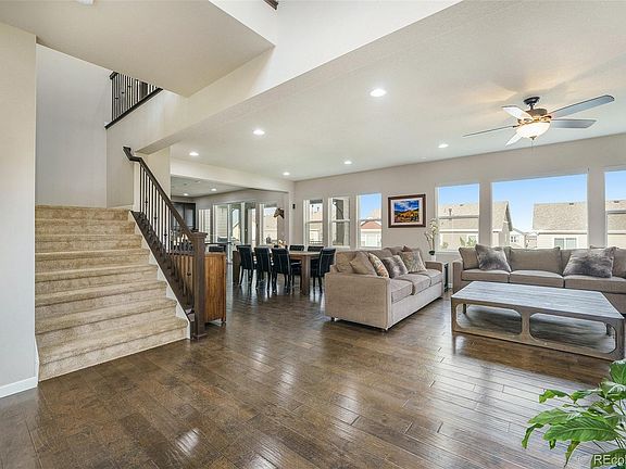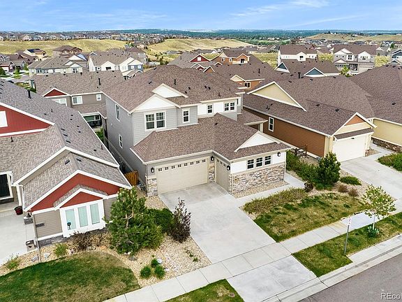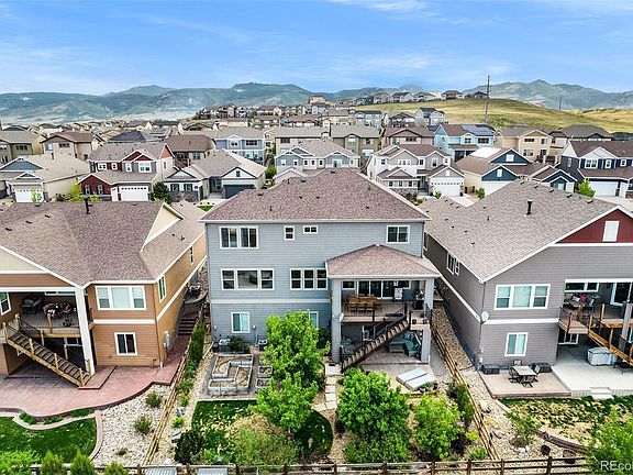 Absolutely stunning home in the highly desirable Leyden Rock neighborhood near the foothills in Arvada. The location is amazing, minutes to the Colorado mountains, easy access to trail systems and many amenities for you and yours to enjoy! As you enter the grand front door you will be welcomed by the expansive great room featuring the family room with cozy gas fireplace, dining area, and a chefs dream kitchen. The kitchen island is enormous, with room for 6 chairs comfortably. Your gourmet features granite countertops, walk-in pantry, beautiful stone backsplash, gas cooktop, double oven, and wall microwave, all in stainless steel. The entrance from the 3-car garage features a walk-in coat closet and mud room. Off the kitchen you can enjoy your large private covered deck with plenty of room for dining and multiple grills. The main floor also offers a private guest en-suite bedroom, and a powder bath. The upper level features the master suite with roomy bathroom and walk-in closet, 2 additional bedrooms, 2 full bathrooms, a loft, and the laundry room with a great linen closet. The large basement is ready for you custom touch, featuring super tall ceilings, multiple windows, and it's a walkout! As you walk out the basement to the cozy covered patio you will find a meticulously designed low maintenance yard with lots of absolutely stunning mature landscaping creating your own private oasis.