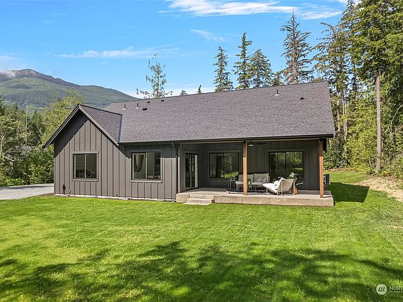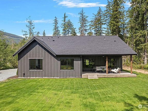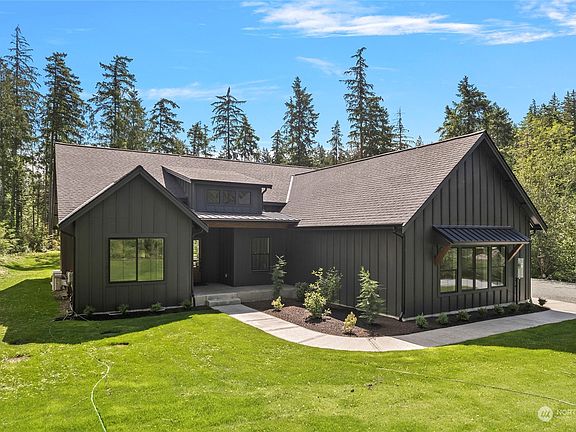 High-end Craftsman home in gated community w/ spectacular architectural features and high-pitched roof! Enjoy the rich details of this quality-build featuring luxury vinyl plank flooring, 9 foot ceilings, custom plastered fireplace, contemporary black windows, waterfall kitchen island w/ matte black sink, and solid quartz counters throughout. Luxurious heated tile floors, Jack & Jill vanities, freestanding soaking tub, walk-in tile shower with frameless glass shower door. Electric high efficiency water heater, and ductless heat pump and A/C, pressurized septic system. Stick-built 28'x36' garage/shop with 14' tall ceilings, space for storage/workbench, RV doors, 200 Amp power, frost-free water hydrant and smooth finish concrete slab.