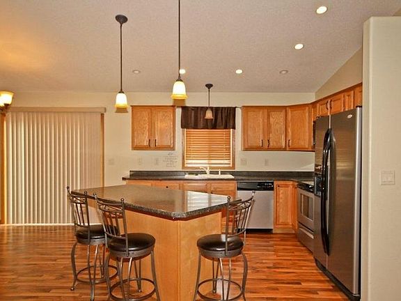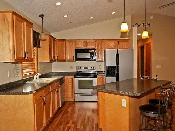 Elbow room! This recently built home sits on a acre+ lot with trees. Designed with a very open floor plan with kitchen island and dining room open to the living room. The home also boasts 4 large bedrooms and 2 baths, with 5th room that could be a fifth bedroom. Oversized 2 stall garage with additional poured parking space along side. Just a few miles off I29, Walcott is an easy commute to F/M.