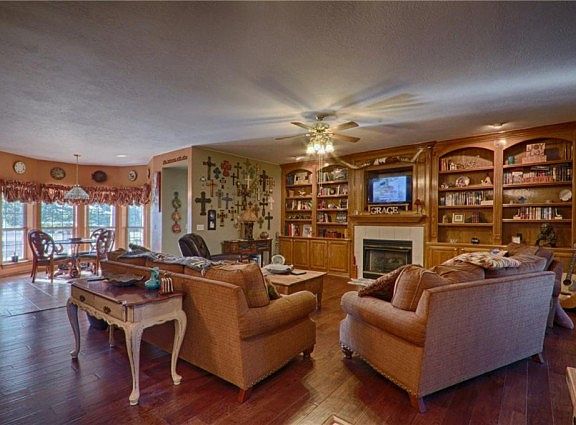 The park-like setting has sensational views of the sunsets from the back patio & deck. Beautiful wood detail in this home with a spacious living room with fireplace flanked by beautiful wood bookcases. Nice large kitchen with lots of counter space, cabinets, eat-in area with bay windows, breakfast bar & built-in appliances. New wood floors have been installed throughout the house.The bedrooms are all spacious & the master has an office with french doors & built-ins.All this on 2.25 acres with a 30x40 shop on the NW side of the property.All this plus the security of 2x6 wall construction and the Hill's quality construction.Easy access to major highways for commuting to Norman, OU, FAA, Will Rogers Airport, TAFB, Boeing, Edmond, Bricktown, Oklahoma City & Moore.
