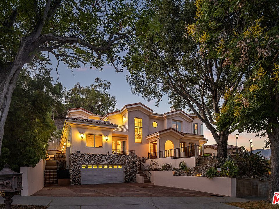 The Monarch at Braewood Estates the crown jewel of one of South Pasadena's only gated communities. With just 20 residences behind its gates, this enclave is both intimate and exclusive. As the largest home in the community, this custom Mediterranean masterpiece commands attention with nearly 5,500 square feet of refined living, 5 suites, 5.5 baths, and a remarkably low HOA. From the moment you enter, elegance surrounds you. Marble floors, a hand-painted mural, and intricate wainscoting details that extend across the ceilings set the tone, highlighted by soft recessed lighting. The formal living room, anchored by a fireplace and wet bar, flows seamlessly into the family room and opens to an elevated setting above the street framing dramatic views of the San Gabriel Mountains and city lights. The chef's kitchen pairs form and function with granite counters, custom cabinetry, a 5-burner range, and walk-in pantry. It connects effortlessly to the formal dining room and a private patio with built-in BBQ perfect for al fresco dining and year round entertaining. A junior primary suite and a dedicated office on the main level add versatility, while a private elevator ensures effortless access across all floors. French doors flood nearly every room with natural light, opening to balconies that wrap the home in views. Upstairs, soaring ceilings and walls of glass amplify the scale and grandeur. Three en-suite bedrooms await, including the primary retreat with sweeping canyon vistas. The spa inspired bath is a sanctuary with glass barn doors, marble encased soaking tub, steam shower, and dual vanities designed for daily indulgence. The lower level offers a private gym (convertible to a studio or storage), plus a two-car garage. Tech-forward living is enhanced by a Tesla Gateway 3V with PowerShare, a next-generation system that automatically balances energy between the grid, the home, and even a connected Cybertruck during outages delivering resilience, efficiency, and peace of mind. Beyond the home, The Monarch embodies the best of South Pasadena living. Families are drawn to its award-winning schools, walkable downtown, and vibrant community spirit. Stroll to weekly farmers markets, boutique shops, and celebrated dining from local favorites like Gus's BBQ to the newly opened Cannonball Bistro. Parks, trails, and summer concerts bring outdoor leisure to your doorstep, while the nearby Metro A Line and 110 freeway put Downtown Los Angeles less than 10 miles away an unmatched blend of access and privacy. Perched above the street with commanding views, The Monarch is more than a residence. It is a rare opportunity to own a home of scale, craftsmanship, and distinction in one of LA's most beloved communities.