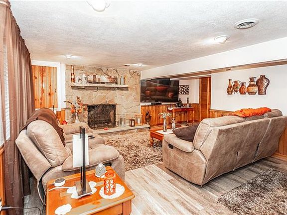 Move right into this amazing multi-level home. On arrival is a well-manicured lawn. Upon entry, welcomed into expansive GR w/gorgeous stone fireplace. Updated bath features tub/shower & bowl sink vanity. Next level, spacious LV filled w/natural light & has gleaming HW & neutral color palette. Preparing meals will be a delight in large KT w/abundance of cabinetry & workspace, recessed lighting & equipped w/appliances. Great sight lines to dining area allow for easy entertaining. Quaint sitting room is ideal for enjoying morning coffee. Upstairs, massive MBR that is bright & cheery w/beautiful HW. Stunning full bath w/ceramic tile, jacuzzi tub, sky light & vanity is accessible from master & hall. 2 additional bedrooms are good-sized w/ample closets. Downstairs find a laundry room & off garage an office. Incredible outdoor space starts as you step out sliding glass doors to extensive rear deck. Fenced in yard leads to inground pool w/cabana & shed. 2 car integral & 2 car detached garage.