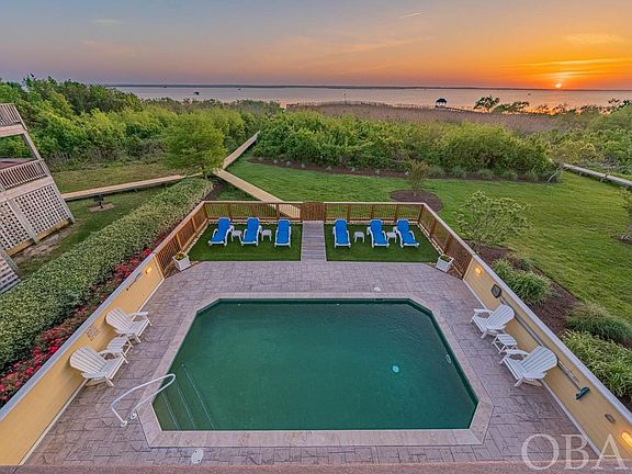 Experience breathtaking views of the Currituck sound and sensational sunsets from this beautifully updated sound front home located in the desirable Monteray Shores community. The top floor main living space features open concept living at its finest with unobstructed water views from every angle. The spacious kitchen offers plenty of room to create meals and entertain with a two tier breakfast bar, beautiful granite counter tops, stainless appliances, beverage refrigerator and gas range. The custom built-in Pantry, added in 2019 provides that coveted extra storage space with style. The Great Room is accented with cathedral ceilings and a wall of windows inviting you step out onto one of the two exterior decks and take in the views of both the private pool and the Currituck sound! The Owners have lovingly created a private outdoor oasis with beautiful landscaping, Tiki Bar, large private pool with new plaster, tile and coping (2021), plus an extended new stamped concrete pool deck (2021) outlined with artificial turf – stays green all year long! Or you may prefer to unwind in the hot tub on the midlevel covered deck! The sound front pier (shared with one neighbor) is the perfect spot to relax and unwind or launch your favorite water toys! The home features 5 comfortable bedrooms (3 ensuite) 5 full baths and a powder bath. The primary with ensuite bathroom is located on the top level and boasts a beautifully remodeled (2022) walk-in shower and sun deck access. Three bedrooms are located midlevel, two offer deck access and ensuite bathrooms. A den/sitting room opening to a covered deck and a convenient laundry room and full hall bathroom complete the midlevel. The ground level consists of a second den/gaming area (currently used as an exercise room), opening to the fabulous pool yard a bunk bedroom, full bath and dry entry. You will appreciate the home’s wide staircase and hallways lending themselves to the overall open feel of the home. Meticulously maintained, additional improvements include newly installed irrigation system (2022), new hot tub (2020), replaced HVAC (2) systems (2020), home exterior painted (2018) and replaced flooring with LVP in common areas and primary bedroom (2019). Monteray Shores offers all the amenities you would expect in a resort community: Clubhouse with fitness center, boat ramp, tennis courts, community pool and playground and more! Located in the heart of Corolla, near beaches, restaurants, local shops and attractions. Make this one your choice for a primary residence, second home or investment property! Projected Advertised Income Range - $113,685 - $123,626!