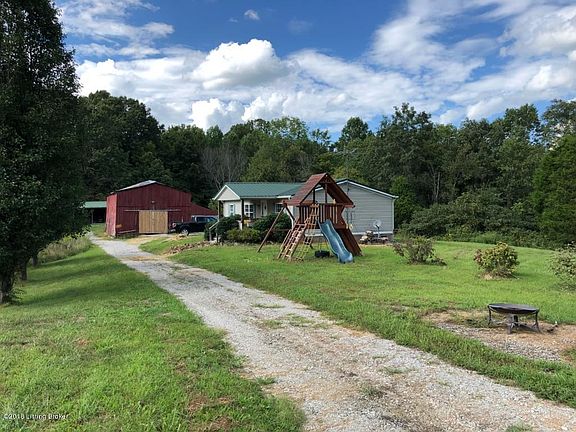 40x24 prefabricated home on permanent foundation, 48.96 secluded AC. w/ ample hunting.The Eveleigh boat ramp is approx 2 mi. away w/ 2nd smaller public ramp nearby, allowing for great access and enjoyment to Rough River Lake. 3Bd/2Ba & 8x15 covered front porch. 38x32 barn & workshop for storage. 24x36 tool shed to keep your boats or wildlife food plot implements in the dry. A 12x24 open overflow cabin with a 6x12 covered front porch will provide a place for your weekend friends to stay and enjoy the lake with you or to stay during hunting season. 2 of the cleared food plots have permanent hunting houses that overlook small fields. If you want even more seclusion, approx .5 AC. pond sits at the back of the property. Big trees, rolling landscape & privacy make this a one of a kind property.