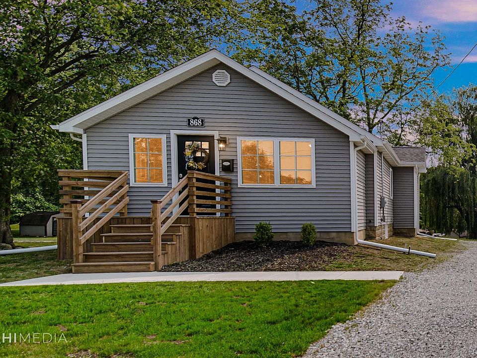 Completely renovated and move-in ready. This 1 acre, 3 bdrm. 2 bath ranch has been lovingly restored with quality finishes and beautiful views. Kitchen includes a full stainless steel appliance package, quartz countertops, custom cabinets, and storage pantry with light and bright views through the oversized new thermopane windows installed throughout the home. Main level full bath, also with daylight transom window, is centrally aligned while the full lower level bathroom, adds a bonus and aligns with any further basement finishing or convenience to the home. Basement is easily accessed where laundry hook-ups can be found and additional untapped sqft. expansion potential exists. Newly poured patio adds to outdoor enjoyment while new mound septic system eliminates worries. Basement has been professionally waterproofed, inside and out, with transferrable warranty being offered. Home is in beautiful Liberty Twp. and within the award winning Duneland School system.