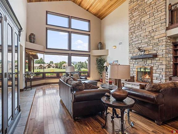 Custom built executive home on the Dalton Ranch Golf Club, overlooking the 15th fairway, in the Animas Valley. This is the original model home for The Cottonwoods and an architecturally designed masterpiece perfect for entertaining groups of any size. The immaculate exterior of the home features stucco, rock and metal with extensive landscaping enhancing the front, back and sides. Irrigation water for landscaping included with the HOA fee. The patio in the back includes a beautiful new gas fireplace, new grill and entertainment area. The inviting entryway leads to a magnificent great room with floor to ceiling windows and amazing views of the red cliffs. The great room has warm walnut hardwood flooring, floor to ceiling stacked stone gas fireplace and beautiful built in shelving. Adjoining the great room and kitchen is the wet bar, including wine refrigerator and abundant storage plus a connecting wine room with cork floor. The chefs kitchen features Sub Zero refrigerator, 48 Wolf range, warming tray, trash compactor, new Bosch dishwasher, oversized slab granite prep island with vegetable sink, gorgeous built-in buffet, bountiful cabinetry, large walk-in pantry, a dining counter and a separate breakfast area with mountain views. Attention to detail includes 8 solid hardwood doors throughout the home and finely upgraded door handles. The separate dining room is casual, yet elegant, with 42 wainscoting and views of Hermosa Mountain. The uniquely shaped office, with cliff and mountain views, has a closet so could be used as a fourth bedroom and has a connecting full bath. Two air conditioners keep it cool in the summer and radiant in floor heat keeps it warm in the winter. In floor heat extends to the garage and the entire driveway for snowmelt. The master bedroom has its own fireplace and large windows with views of the golf course and red cliffs. Five-piece master bath and walk-in closet are both well oversized. Bath includes jetted soaking tub and large steam shower with multiple shower heads. The second floor contains a spacious loft with built in cabinetry and wet bar as well as a granite counter used as a second office. Also on the second floor are two guest bedrooms with a full bathroom in between. The three car garage of nearly 1000 square feet contains several storage compartments. All of this in one of Southwest Colorados finest golf course communities, close to Purgatory Ski Resort and minutes to Historic Downtown Durango.