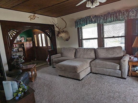 This turn-of-the-century home seamlessly blends historical charm with modern updates, making for a delightful living space. The kitchen features updated oak cabinets and flows openly into the dining room, creating a welcoming atmosphere for gatherings. The home boasts wide trim and special wood details that add to its character.