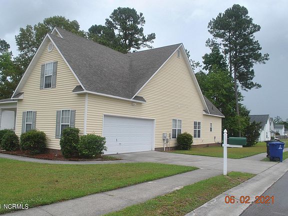 Just minutes to Camp Lejeune main gate, this home is located on a .32 acre corner lot, and was constructed in 2004 and has a formal dining room, a den, and eat in kitchen, plus a two car attached garage. Interior features include a living room with a vaulted ceiling and a fireplace, a downstairs master suite plus a bonus room / fourth bedroom above the garage. Exterior has maintenance free vinyl siding and thermal windows. Recent upgrades include new LVP flooring in Dining Room, Living room, and Hallways, A new roof installed in 2018, Refrigerator and water heater were replaced in May of 2020 and the Dishwasher in 2020 as well.