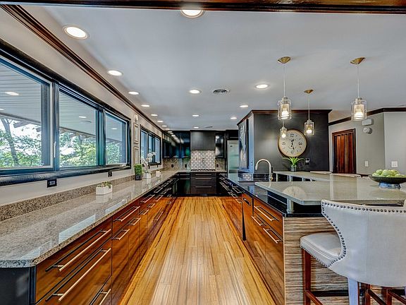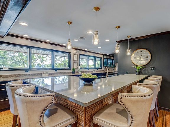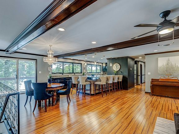 REDUCED $50,000! Experience magnificent views of Carpenters Lake from both levels of this unique home situated on over an acre. The grand open floor plan with impressive stone wall and fireplace welcomes you in. This home features a custom kitchen that was professionally designed to capture the spectacular lake views from every angle. There are 4 spacious bedrooms on the main level and a private master suite with balcony access. You will love the finished lower level with 2 additional living areas, an office, 5th bedroom, updated bathroom and kitchenette. The wrap around porch encompasses over 1300 sqft overlooking the stone courtyard and scenic lake views.