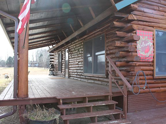 Red Pine, Full Log Home. Beautiful, partially wooded setting on 4.5 Acres. Two Bedrooms, 1 1/2 Baths. Half bath located in master bedroom. 2nd bedroom located in loft with closets and deck. Slider off kitchen to deck and pool area. 16x32 Inground Pool. Metal Roof. Central Air. Generator. Newer storm door and entry doors. Appliances Included. 24x40 3-Stall garage with metal roof. 40x74 Barn. Asphalt Driveway. Propane.