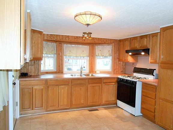 This is one of the BEST units in the park! Completely remodeled home with newer kitchen, bathroom, flooring, lighting, insulation, doors, porch, fence and driveway sitting on a DOUBLE-sized corner lot!! Gorgeous and spacious kitchen open to living room with tiled mantel ready for your pellet stove hook up! Master Bedroom is completely renovated and has a fabulous closet maid closet. Brand new bathroom, washer/dryer hook ups, new windows throughout and a full security system. Great corner lot is oversized and located in the rear part of the park. 2 sheds to remain. Very quiet, freshly painted and in meticulous condition. This one won't last long!