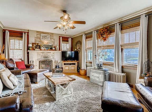 ATTRACTIVE TUDOR style home w/large dormer has 5 total bedrooms, including 3 spacious BRs on 2nd floor!!! Recently updated full baths on both 1st & 2nd levels, allowing for possible in-law arrangement or accommodating a large family. Beautiful living room w/newer custom brick fireplace & accent lighting, hardwood floors & crown molding! Delightful kitchen w/stainless appliances was updated in 2018! Separate dining room has hardwood & crown molding too! Great basement features large family room w/vented glass block windows, office w/French Doors, storage room, utility room & large laundry w/laundry chute from upper floors! New architectural roof w/tear-off, ice & water shield in approx 2010, water heater & boiler (approx 2012), & vinyl siding on dormer (approx 2008). Plenty of play space w/nice patio overlooking extra deep (198 ft) yard! Good neighborhood schools are all within walking distance! Lovingly cared for ... don't miss it!