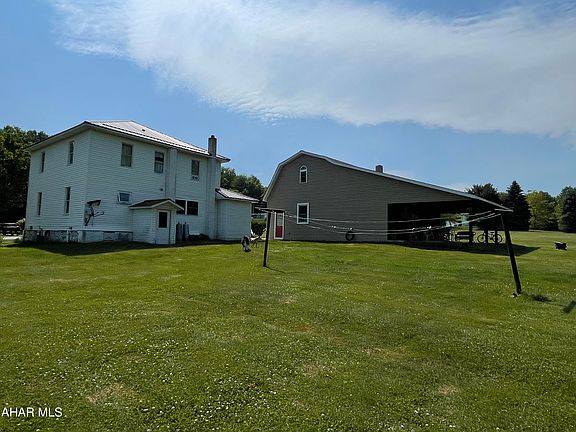 If you are looking for a spacious home to entertain family and friends both inside and out then this is the home for you. This 4 bedroom 2 bath home on a flat 2.3 acre parcel has had many updates throughout. Step inside the large first floor laundry/mudroom to take off shoes and coats. The expansive kitchen has plenty of counter space to prepare meals and there is no shortage of storage with lots of cabinets and a pantry. The kitchen can accommodate a large table. There is a 3/4 bath on first floor for guests when entertaining. Also on this floor is a dining room off of the kitchen with built in shelves, a nice sized living room and a sunroom. The second floor features four large bedrooms and one full bath. There is plenty of closet space in this home. Outside you will find a newer metal roof and an oversized two car garage with a loft above for possible game room/media room and also a room that houses the outdoor furnace. House also has an oil furnace in the basement. There is a large covered patio area behind the garage perfect for summer picnics. Come stretch your legs and see this property.