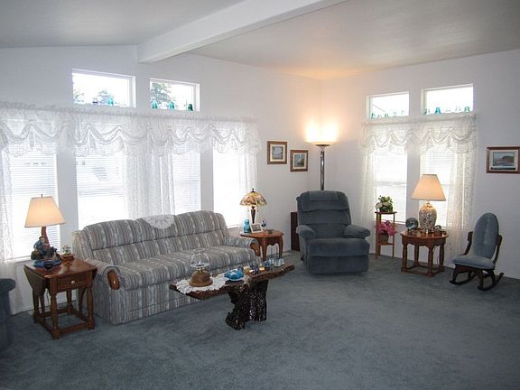 Goldenwest 2 bdrm plus den/2 bath immaculate home on corner lot. All new flooring throughout; roof (2008) Spacious kitchen/dining all new countertops, Lg center island, breakfast nook with door out to covered patio. Master with retreat area; both bathrooms remodeled; enclosed 10 x 16 mudroom/exercise room connects to 34 x 44 finished & insulated garage with 12' door; 30 amp/dumpsite.