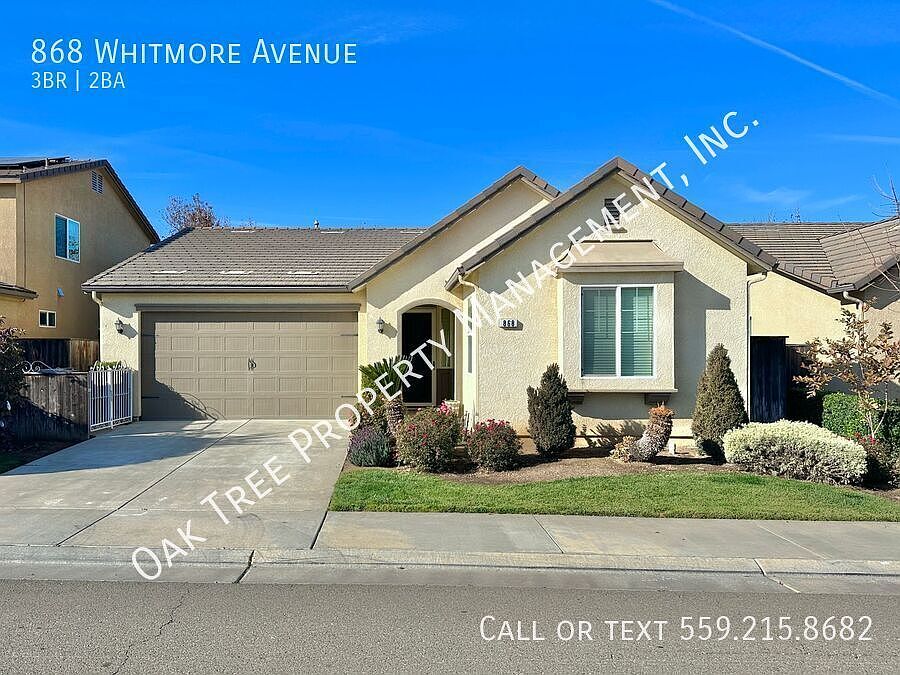This charming single-story home features 3 bedrooms and 2 bathrooms, perfect for those looking for a cozy yet spacious living space. The house boasts a two-car garage, a laundry room, and a spacious kitchen with granite countertops. The great room with wood-like flooring is perfect for entertaining guests or relaxing with loved ones. The owner's suite includes a separate tub and shower for added convenience. Enjoy the outdoors in the spacious backyard with a covered patio, perfect for hosting summer BBQs or simply enjoying the fresh air. Located near schools, restaurants, and shopping, this home is also close to trails for those who love outdoor activities. Plus, with solar panels, you can save on energy costs while reducing your carbon footprint. Don't miss out on this fantastic opportunity to make 868 Whitmore Ave your new home! 10 month lease. No pets. A refrigerator, washer, and dryer are provided for tenant's use (no warranty). Tenants will be responsible for all utilities including PG&E, water, sewer, trash, and solar true-up. READY TO APPLY? Close To Restaurants Close To Schools Close To Shopping Great Room With Wood Like Flooring House Has Solar Laundry Room Owners Suite Has Seperate Tub And Shower Single Story Spacious Backyard With Covered Patio Spacious Kitchen With Granite Counter Tops Three Bedroom Trails Nearby Two Bathrooms Two Car Garage